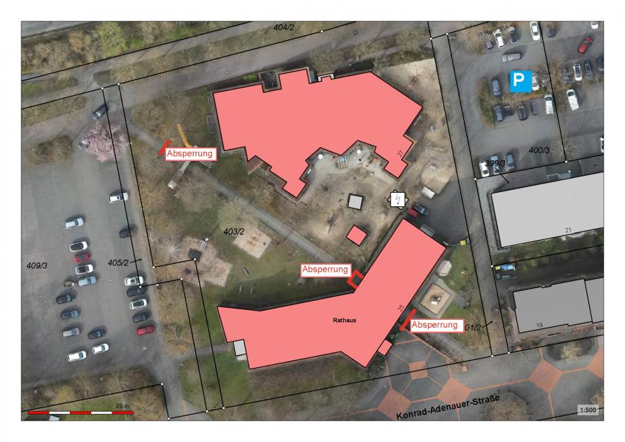 Den Bürgerinnen und Bürgern stehen ab sofort zwei alternative Wege zur Verfügung: Westlich des Geländes über den Großparkplatz sowie östlich neben dem Rathaus entlang.